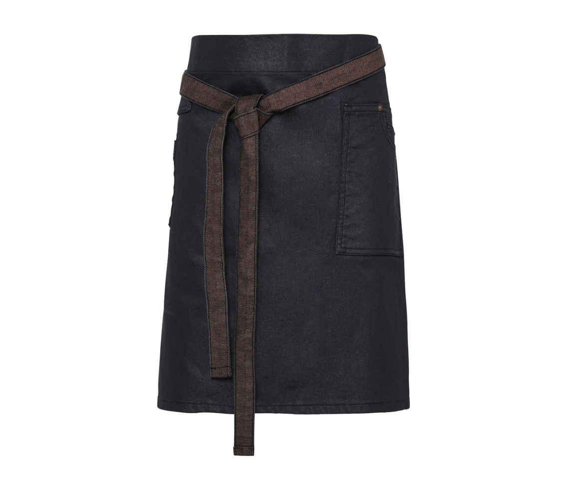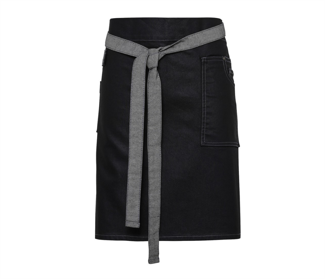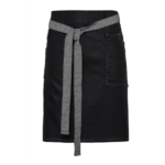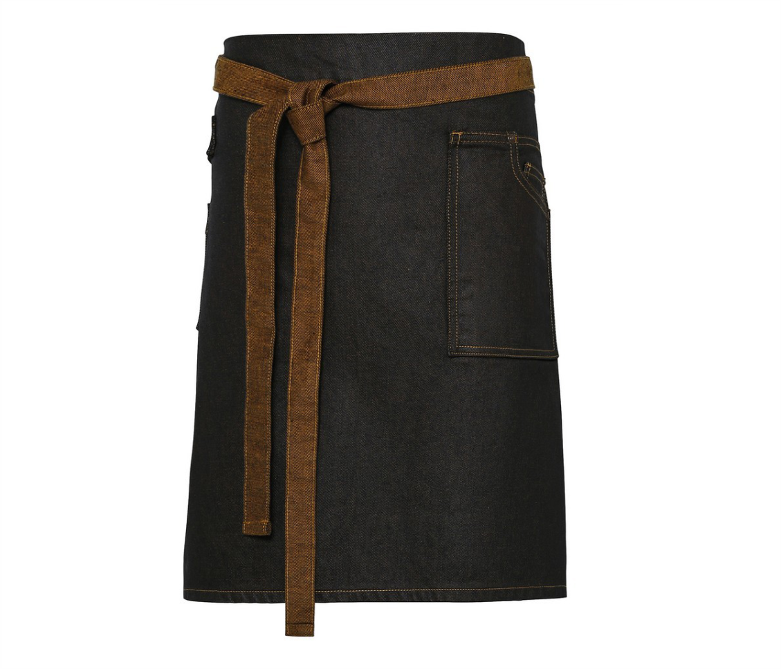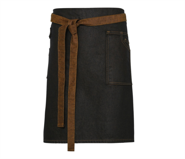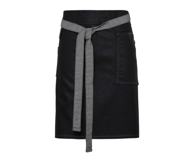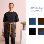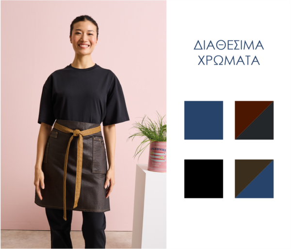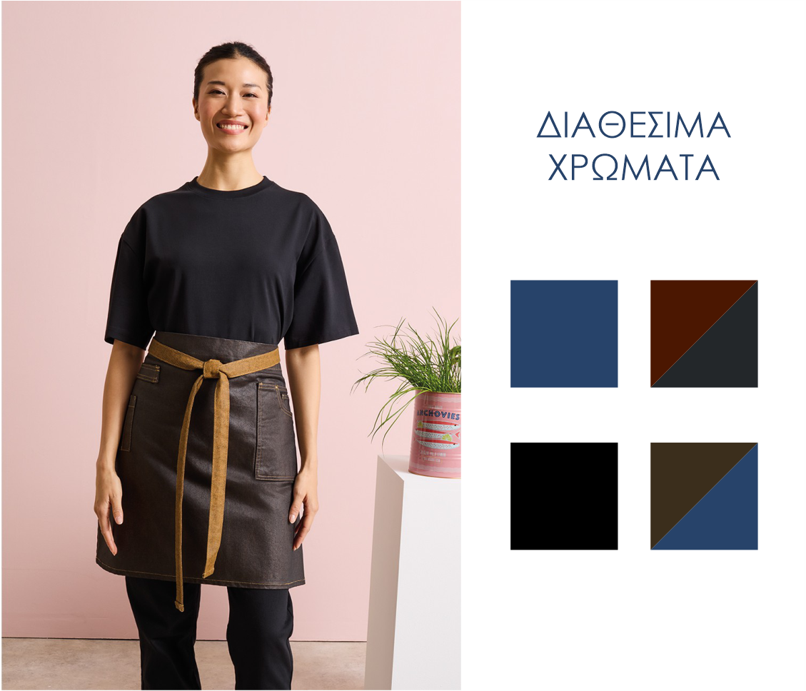 Μεσαίου μήκους ποδιά μέσης - Δέσιμο στη μέση με υφασμάτινο λουρί περασμένο από μεταλλικές οπές - Μεγάλη τσέπη τζιν (18x20 εκ.) με εξώραφα - Θήκη για πετσέτα στο πλάι Διαστάσεις: 50 x 72εκ.