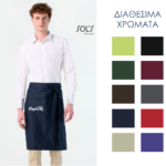Λεπτομέρειες: Ποδιά μέσης - Μεγάλη κεντρική τσέπη με 2 χωρίσματα - Δέσιμο με κορδόνια στη μέση Διαστάσεις: 65 x 90 εκ.